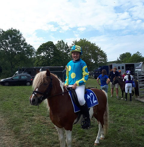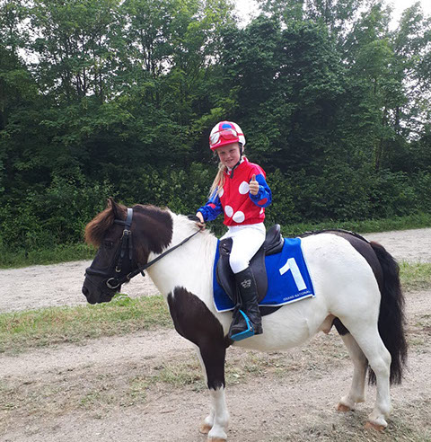 Pony: Rijdt op de zwart-bonte Shetlander ‘Apache’.