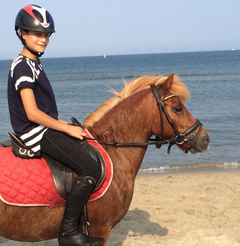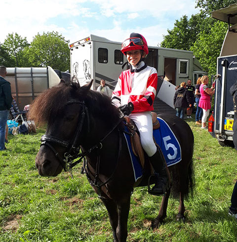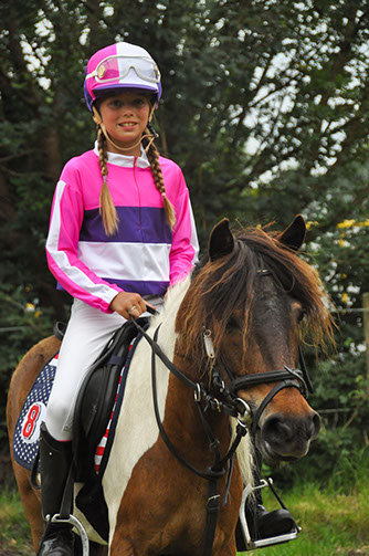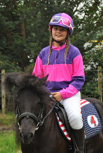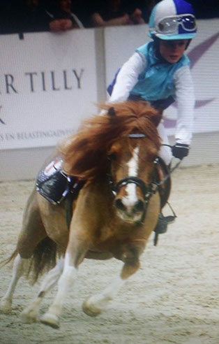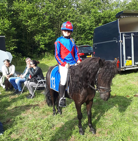 Pony: Rijdt op de zwart-bonte Shetlander ‘Apache’.